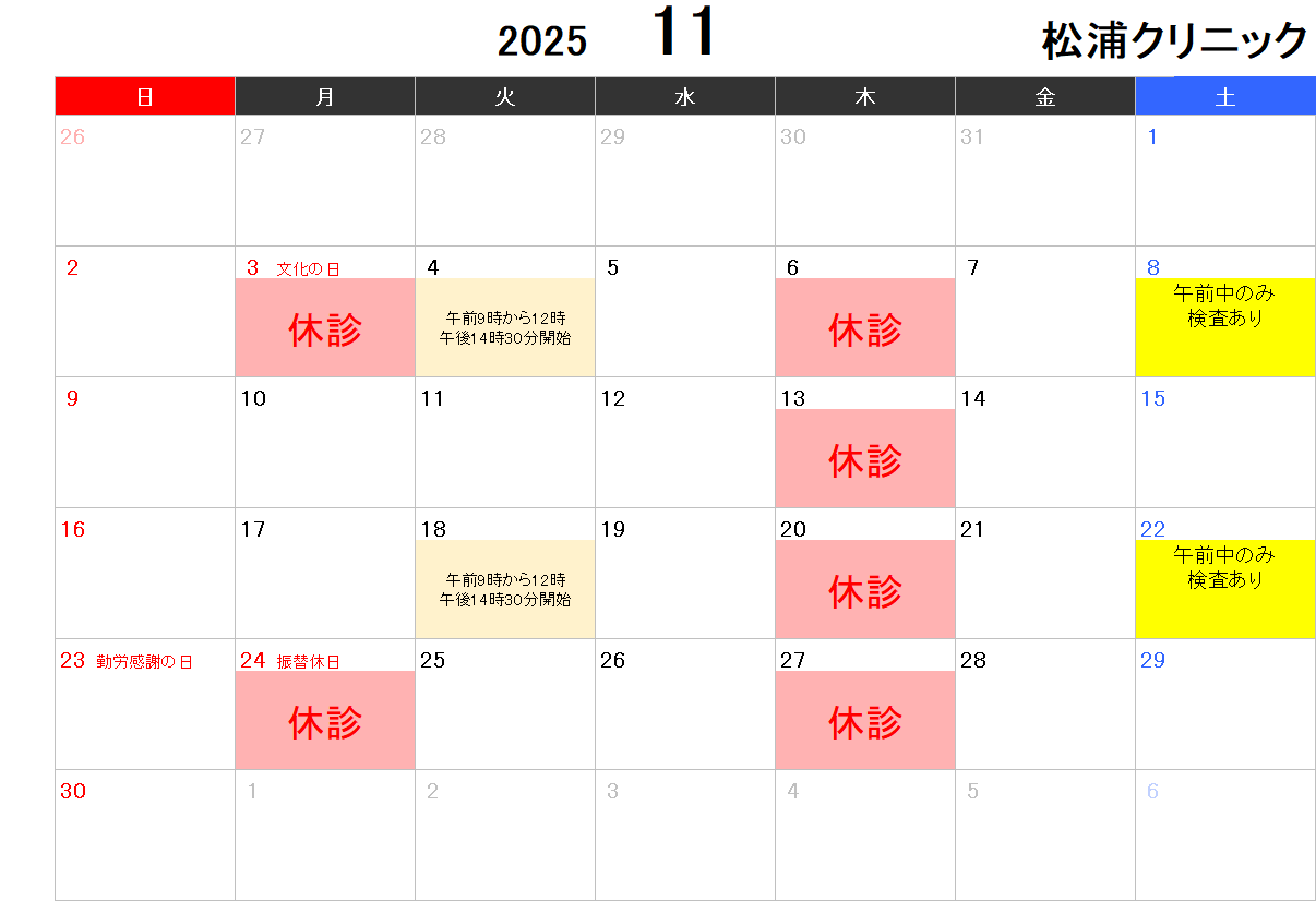 2025.11月の休診日のお知らせ