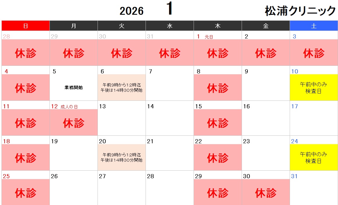 年明けは2026年1月5日より開始です。休診日のお知らせ